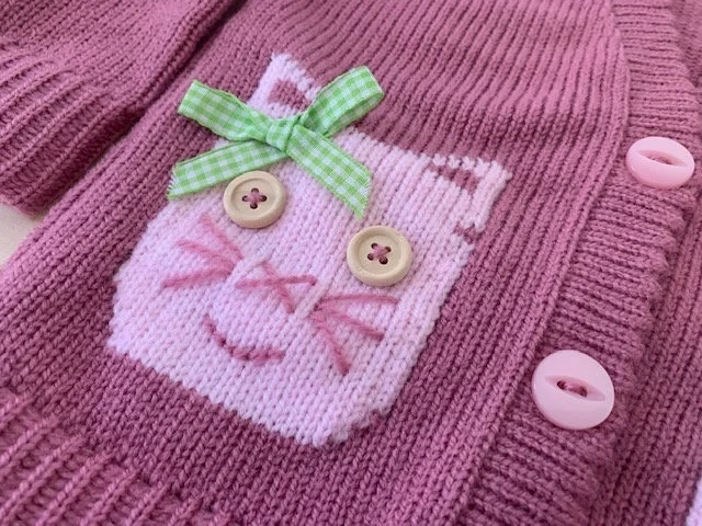 This beautifully crafted children’s cardigan is machine-knitted from soft-touch acrylic yarn.