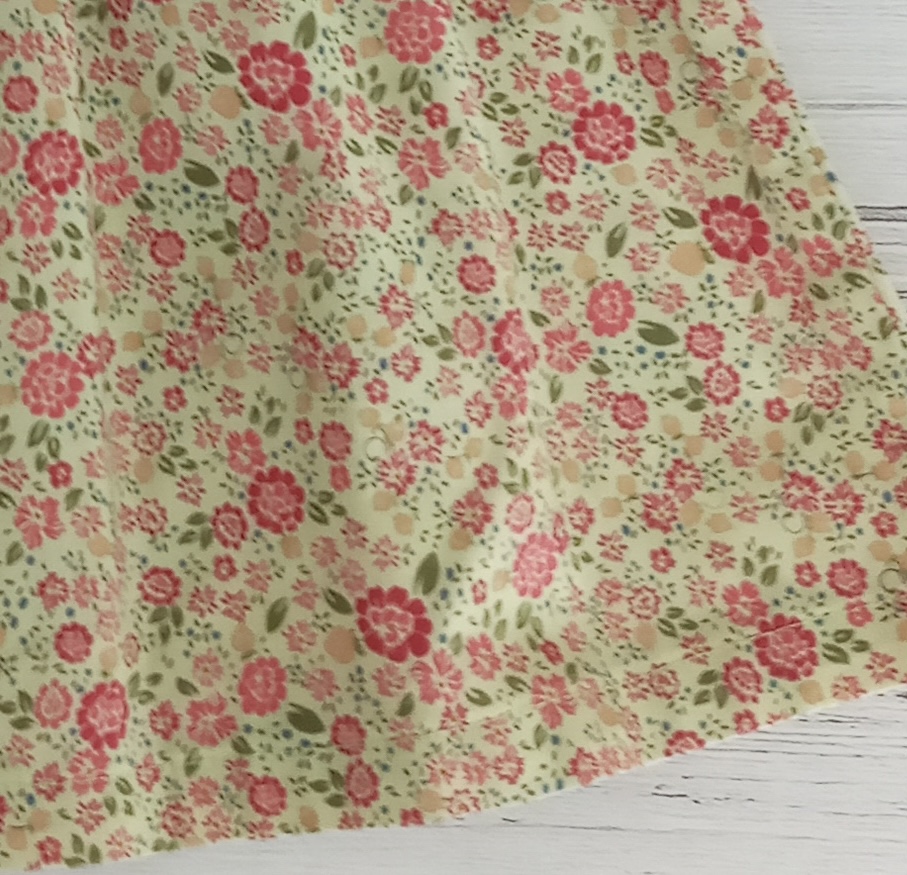 Crafted from 100% soft cotton fabric this delightful handmade dress features a charming ditsy floral print on a cream background. The bodice is lined in a pink cotton which complements the pattern.